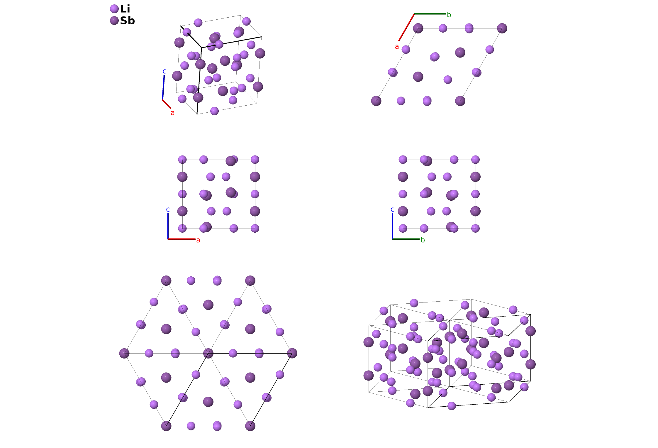 | $\mathbf{B_{6}}$ | = | $\frac{2}{3} \, \mathbf{a}_{1}+\frac{1}{3} \, \mathbf{a}_{2}+\left(z_{2} + \frac{1}{2}\right) \, \mathbf{a}_{3}$ | = | $\frac{1}{2}a \,\mathbf{\hat{x}}- \frac{\sqrt{3}}{6}a \,\mathbf{\hat{y}}+c \left(z_{2} + \frac{1}{2}\right) \,\mathbf{\hat{z}}$ | (4f) | Sb II |