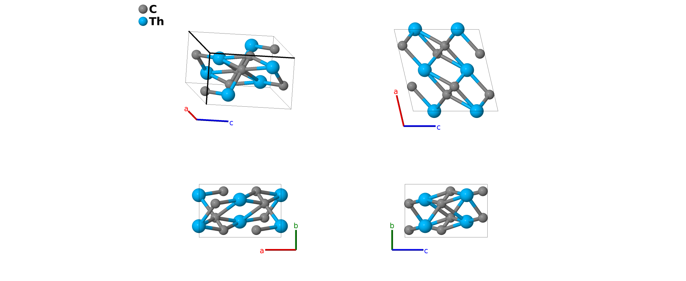 | $\mathbf{B_{2}}$ | = | $y_{1} \, \mathbf{a}_{1}- y_{1} \, \mathbf{a}_{2}+\frac{3}{4} \, \mathbf{a}_{3}$ | = | $\frac{3}{4}c \cos{\beta} \,\mathbf{\hat{x}}- b y_{1} \,\mathbf{\hat{y}}+\frac{3}{4}c \sin{\beta} \,\mathbf{\hat{z}}$ | (4e) | Th I |