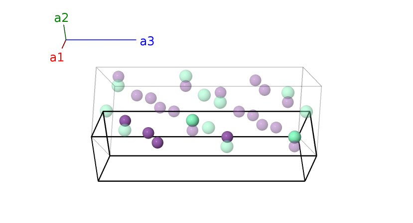 | $\mathbf{B_{7}}$ | = | $- \left(y_{2} - \frac{1}{2}\right) \, \mathbf{a}_{1}+\left(y_{2} + \frac{1}{2}\right) \, \mathbf{a}_{2}- \left(z_{2} - \frac{1}{2}\right) \, \mathbf{a}_{3}$ | = | $\frac{1}{2}a \,\mathbf{\hat{x}}+b y_{2} \,\mathbf{\hat{y}}- c \left(z_{2} - \frac{1}{2}\right) \,\mathbf{\hat{z}}$ | (8f) | Sb II |