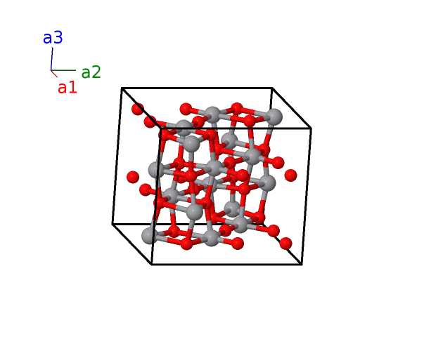 | $\mathbf{B_{32}}$ | = | $y_{2} \, \mathbf{a}_{1}+x_{2} \, \mathbf{a}_{2}+\left(z_{2} + \frac{1}{2}\right) \, \mathbf{a}_{3}$ | = | $a y_{2} \,\mathbf{\hat{x}}+a x_{2} \,\mathbf{\hat{y}}+c \left(z_{2} + \frac{1}{2}\right) \,\mathbf{\hat{z}}$ | (16g) | O II |