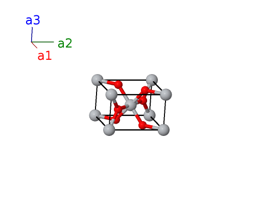 | $\mathbf{B_{5}}$ | = | $- \left(x_{2} - \frac{1}{2}\right) \, \mathbf{a}_{1}+\left(x_{2} + \frac{1}{2}\right) \, \mathbf{a}_{2}+\frac{1}{2} \, \mathbf{a}_{3}$ | = | $- a \left(x_{2} - \frac{1}{2}\right) \,\mathbf{\hat{x}}+a \left(x_{2} + \frac{1}{2}\right) \,\mathbf{\hat{y}}+\frac{1}{2}c \,\mathbf{\hat{z}}$ | (4f) | O I |