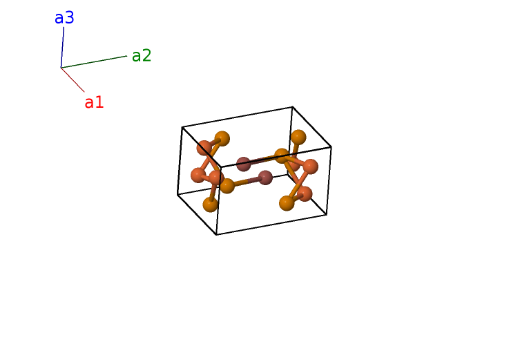 | $\mathbf{B_{5}}$ | = | $- \left(x_{2} - y_{2}\right) \, \mathbf{a}_{1}- x_{2} \, \mathbf{a}_{2}+\frac{1}{4} \, \mathbf{a}_{3}$ | = | $- \frac{1}{2}a \left(2 x_{2} - y_{2}\right) \,\mathbf{\hat{x}}- \frac{\sqrt{3}}{2}a y_{2} \,\mathbf{\hat{y}}+\frac{1}{4}c \,\mathbf{\hat{z}}$ | (6h) | Fe I |