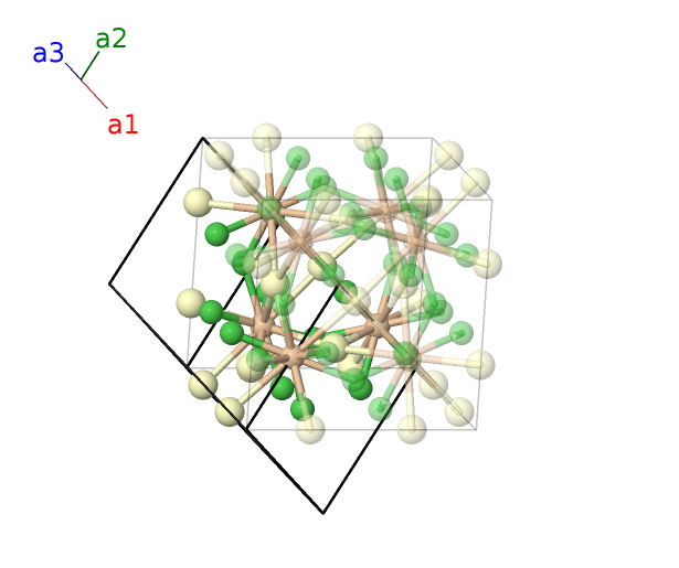 | $\mathbf{B_{1}}$ | = | $\frac{1}{2} \, \mathbf{a}_{1}+\frac{1}{2} \, \mathbf{a}_{2}+\frac{1}{2} \, \mathbf{a}_{3}$ | = | $\frac{1}{4}a \,\mathbf{\hat{x}}+\frac{1}{4}a \,\mathbf{\hat{y}}+\frac{1}{4}a \,\mathbf{\hat{z}}$ | (8c) | Si I |