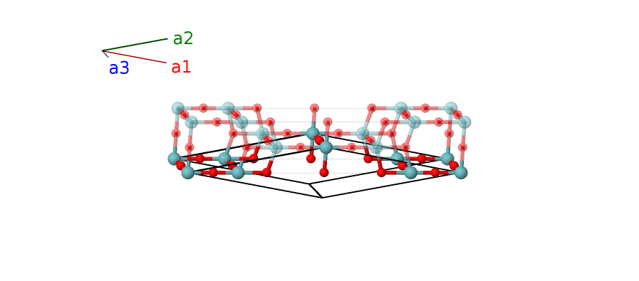 | $\mathbf{B_{3}}$ | = | $\frac{1}{2} \, \mathbf{a}_{1}+\frac{1}{2} \, \mathbf{a}_{2}+\frac{1}{2} \, \mathbf{a}_{3}$ | = | $\frac{1}{2}a \,\mathbf{\hat{x}}+\frac{1}{2}c \,\mathbf{\hat{z}}$ | (2c) | O II |