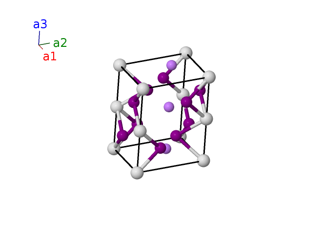 | $\mathbf{B_{8}}$ | = | $- y_{3} \, \mathbf{a}_{1}- x_{3} \, \mathbf{a}_{2}+\frac{3}{4} \, \mathbf{a}_{3}$ | = | $- \frac{1}{2}a \left(x_{3} + y_{3}\right) \,\mathbf{\hat{x}}- \frac{\sqrt{3}}{2}a \left(x_{3} - y_{3}\right) \,\mathbf{\hat{y}}+\frac{3}{4}c \,\mathbf{\hat{z}}$ | (6k) | I I |