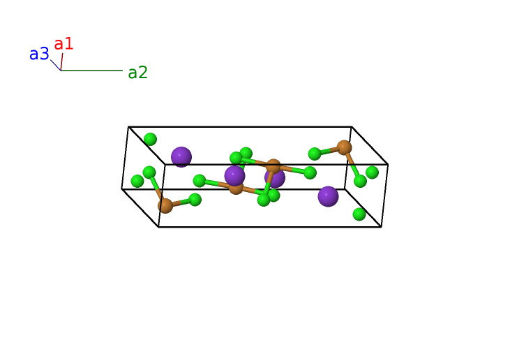 | $\mathbf{B_{14}}$ | = | $- x_{4} \, \mathbf{a}_{1}+\left(y_{4} + \frac{1}{2}\right) \, \mathbf{a}_{2}- \left(z_{4} - \frac{1}{2}\right) \, \mathbf{a}_{3}$ | = | $- \left(a x_{4} + c \left(z_{4} - \frac{1}{2}\right) \cos{\beta}\right) \,\mathbf{\hat{x}}+b \left(y_{4} + \frac{1}{2}\right) \,\mathbf{\hat{y}}- c \left(z_{4} - \frac{1}{2}\right) \sin{\beta} \,\mathbf{\hat{z}}$ | (4e) | Cu I |