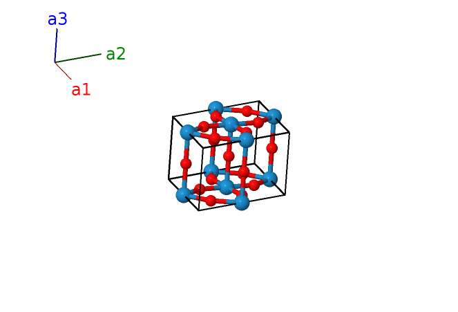| $\mathbf{B_{6}}$ | = | $\frac{1}{2} \, \mathbf{a}_{1}+\frac{1}{2} \, \mathbf{a}_{2}+\frac{1}{2} \, \mathbf{a}_{3}$ | = | $\frac{1}{2}a \,\mathbf{\hat{x}}+\frac{1}{2}c \,\mathbf{\hat{z}}$ | (3g) | O I |
