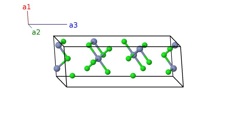 | $\mathbf{B_{14}}$ | = | $- y_{4} \, \mathbf{a}_{1}+\left(x_{4} - y_{4}\right) \, \mathbf{a}_{2}+\left(z_{4} + \frac{1}{3}\right) \, \mathbf{a}_{3}$ | = | $\frac{1}{2}a \left(x_{4} - 2 y_{4}\right) \,\mathbf{\hat{x}}+\frac{\sqrt{3}}{2}a x_{4} \,\mathbf{\hat{y}}+c \left(z_{4} + \frac{1}{3}\right) \,\mathbf{\hat{z}}$ | (6c) | Cl II |