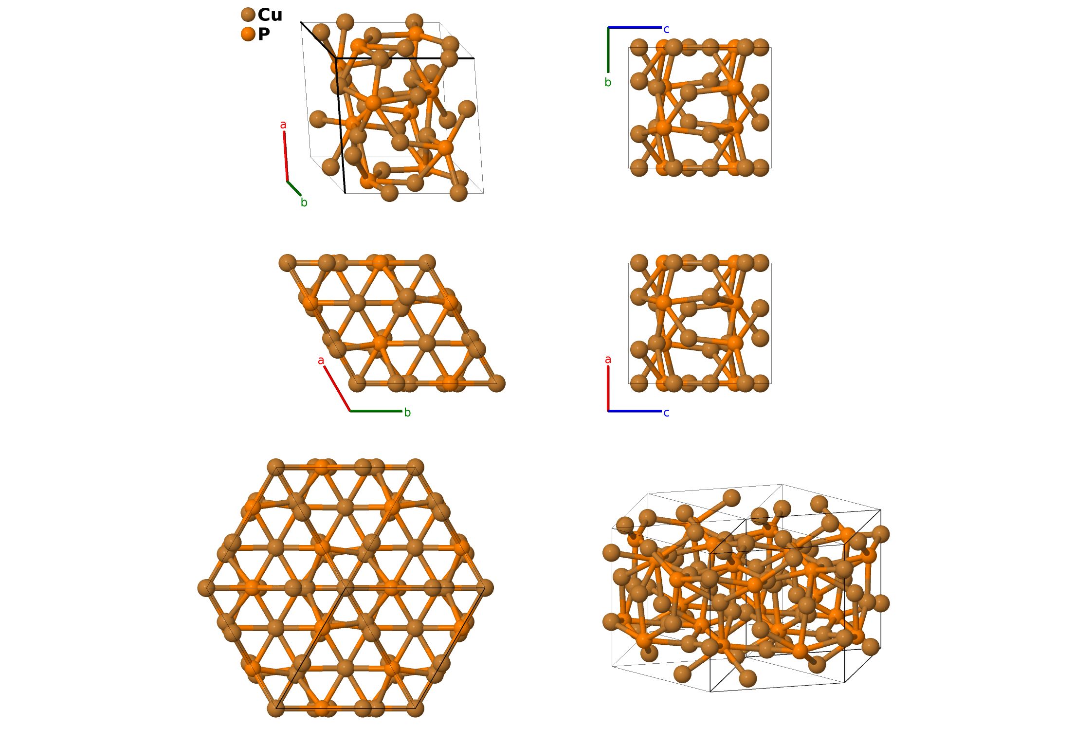| $\mathbf{B_{6}}$ | = | $\frac{2}{3} \, \mathbf{a}_{1}+\frac{1}{3} \, \mathbf{a}_{2}+z_{2} \, \mathbf{a}_{3}$ | = | $\frac{1}{2}a \,\mathbf{\hat{x}}- \frac{\sqrt{3}}{6}a \,\mathbf{\hat{y}}+c z_{2} \,\mathbf{\hat{z}}$ | (4b) | Cu II |