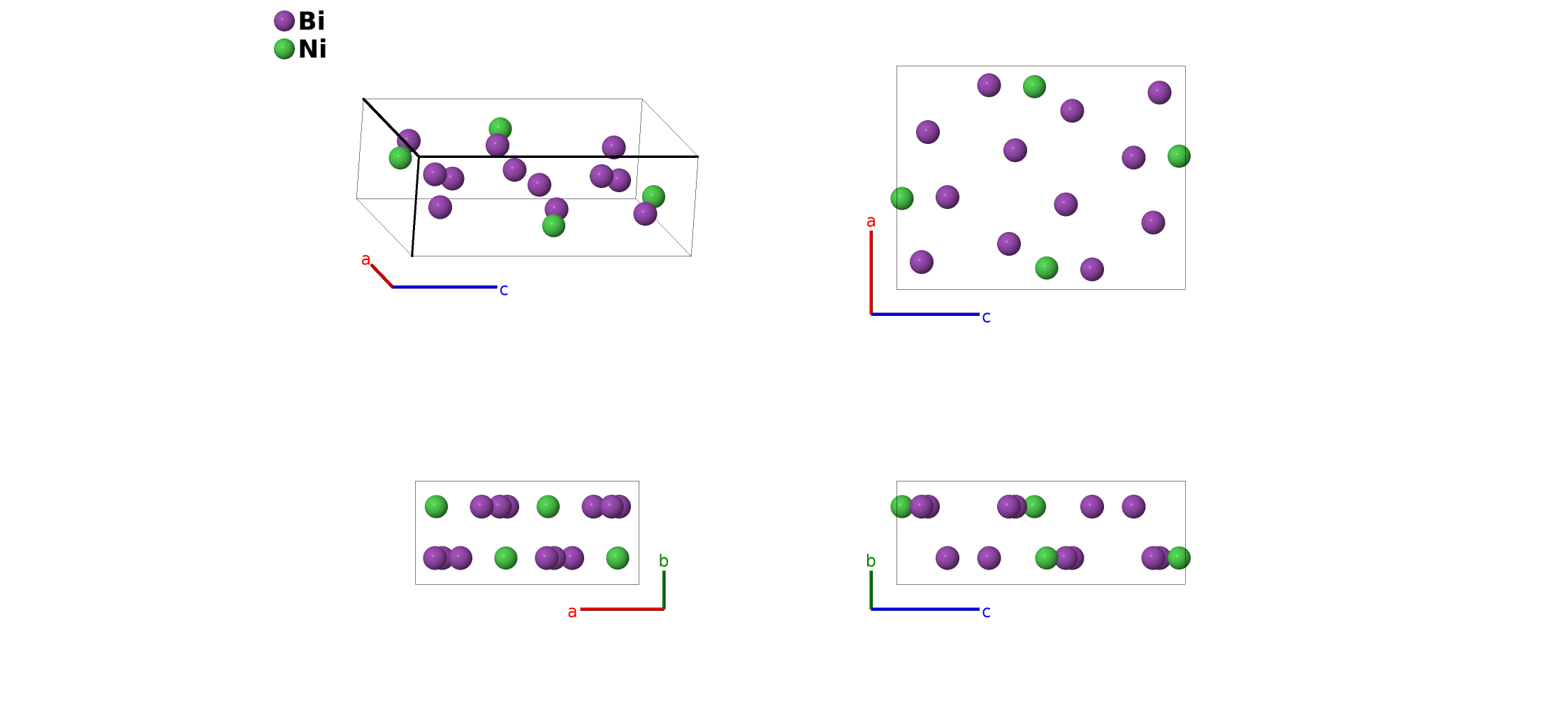 | $\mathbf{B_{16}}$ | = | $\left(x_{4} + \frac{1}{2}\right) \, \mathbf{a}_{1}+\frac{1}{4} \, \mathbf{a}_{2}- \left(z_{4} - \frac{1}{2}\right) \, \mathbf{a}_{3}$ | = | $a \left(x_{4} + \frac{1}{2}\right) \,\mathbf{\hat{x}}+\frac{1}{4}b \,\mathbf{\hat{y}}- c \left(z_{4} - \frac{1}{2}\right) \,\mathbf{\hat{z}}$ | (4c) | Ni I |