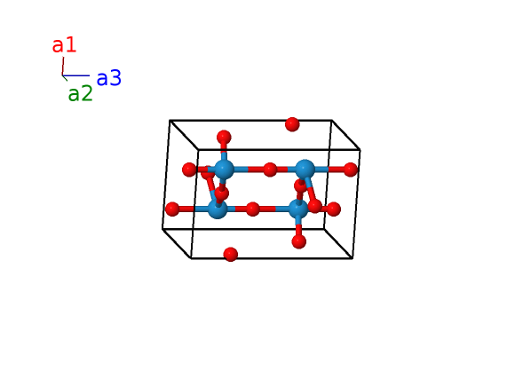 | $\mathbf{B_{2}}$ | = | $\frac{3}{4} \, \mathbf{a}_{1}+\frac{3}{4} \, \mathbf{a}_{2}- \left(z_{1} - \frac{1}{2}\right) \, \mathbf{a}_{3}$ | = | $\frac{3}{4}a \,\mathbf{\hat{x}}+\frac{3}{4}a \,\mathbf{\hat{y}}- c \left(z_{1} - \frac{1}{2}\right) \,\mathbf{\hat{z}}$ | (4c) | O I |