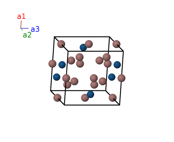 | $\mathbf{B_{7}}$ | = | $- \left(x_{2} - \frac{1}{2}\right) \, \mathbf{a}_{1}+\left(x_{2} + \frac{1}{2}\right) \, \mathbf{a}_{2}+\frac{1}{2} \, \mathbf{a}_{3}$ | = | $- a \left(x_{2} - \frac{1}{2}\right) \,\mathbf{\hat{x}}+a \left(x_{2} + \frac{1}{2}\right) \,\mathbf{\hat{y}}+\frac{1}{2}c \,\mathbf{\hat{z}}$ | (4f) | Ir I |