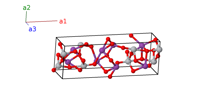 | $\mathbf{B_{32}}$ | = | $x_{16} \, \mathbf{a}_{1}- y_{16} \, \mathbf{a}_{2}+\left(z_{16} + \frac{1}{2}\right) \, \mathbf{a}_{3}$ | = | $\left(a x_{16} + c \left(z_{16} + \frac{1}{2}\right) \cos{\beta}\right) \,\mathbf{\hat{x}}- b y_{16} \,\mathbf{\hat{y}}+c \left(z_{16} + \frac{1}{2}\right) \sin{\beta} \,\mathbf{\hat{z}}$ | (2a) | O XII |