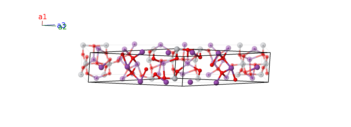 | $\mathbf{B_{33}}$ | = | $\left(x_{9} + \frac{1}{2}\right) \, \mathbf{a}_{1}- \left(y_{9} + z_{9} - \frac{1}{2}\right) \, \mathbf{a}_{2}+\left(- y_{9} + z_{9} + \frac{1}{2}\right) \, \mathbf{a}_{3}$ | = | $a \left(x_{9} + \frac{1}{2}\right) \,\mathbf{\hat{x}}- b \left(y_{9} - \frac{1}{2}\right) \,\mathbf{\hat{y}}+c z_{9} \,\mathbf{\hat{z}}$ | (8b) | O VI |