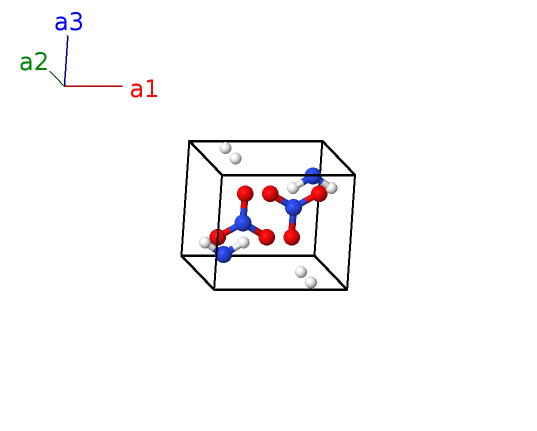 | $\mathbf{B_{3}}$ | = | $\frac{1}{4} \, \mathbf{a}_{1}+\frac{1}{4} \, \mathbf{a}_{2}+z_{2} \, \mathbf{a}_{3}$ | = | $\frac{1}{4}a \,\mathbf{\hat{x}}+\frac{1}{4}b \,\mathbf{\hat{y}}+c z_{2} \,\mathbf{\hat{z}}$ | (2a) | O I |