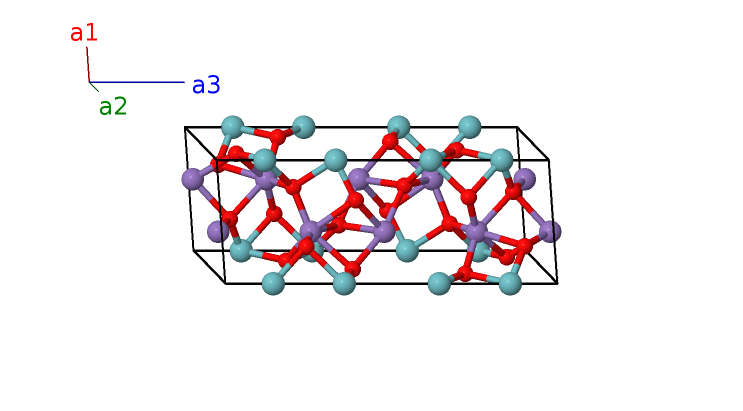 | $\mathbf{B_{28}}$ | = | $- y_{5} \, \mathbf{a}_{1}- x_{5} \, \mathbf{a}_{2}+\left(z_{5} + \frac{1}{2}\right) \, \mathbf{a}_{3}$ | = | $- \frac{1}{2}a \left(x_{5} + y_{5}\right) \,\mathbf{\hat{x}}- \frac{\sqrt{3}}{2}a \left(x_{5} - y_{5}\right) \,\mathbf{\hat{y}}+c \left(z_{5} + \frac{1}{2}\right) \,\mathbf{\hat{z}}$ | (12g) | O II |