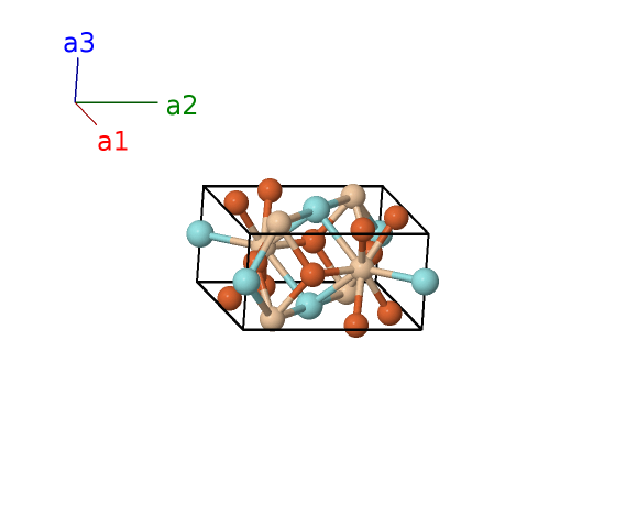 | $\mathbf{B_{9}}$ | = | $- \left(y_{3} - \frac{1}{2}\right) \, \mathbf{a}_{1}+\left(x_{3} + \frac{1}{2}\right) \, \mathbf{a}_{2}+\frac{1}{2} \, \mathbf{a}_{3}$ | = | $- a \left(y_{3} - \frac{1}{2}\right) \,\mathbf{\hat{x}}+a \left(x_{3} + \frac{1}{2}\right) \,\mathbf{\hat{y}}+\frac{1}{2}c \,\mathbf{\hat{z}}$ | (8i) | Fe I |