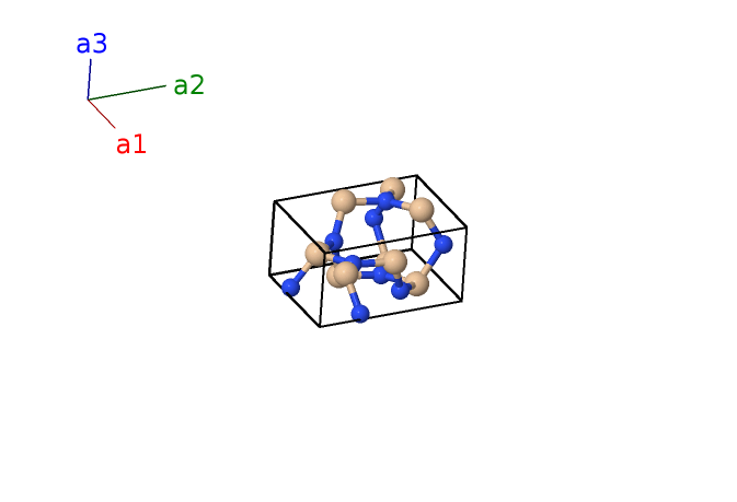 | $\mathbf{B_{1}}$ | = | $\frac{1}{3} \, \mathbf{a}_{1}+\frac{2}{3} \, \mathbf{a}_{2}+z_{1} \, \mathbf{a}_{3}$ | = | $\frac{1}{2}a \,\mathbf{\hat{x}}+\frac{\sqrt{3}}{6}a \,\mathbf{\hat{y}}+c z_{1} \,\mathbf{\hat{z}}$ | (2b) | N I |