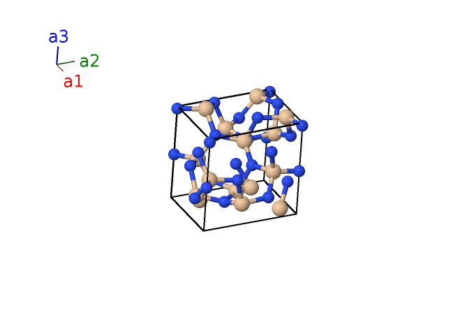 | $\mathbf{B_{3}}$ | = | $\frac{1}{3} \, \mathbf{a}_{1}+\frac{2}{3} \, \mathbf{a}_{2}+z_{2} \, \mathbf{a}_{3}$ | = | $\frac{1}{2}a \,\mathbf{\hat{x}}+\frac{\sqrt{3}}{6}a \,\mathbf{\hat{y}}+c z_{2} \,\mathbf{\hat{z}}$ | (2b) | N II |
