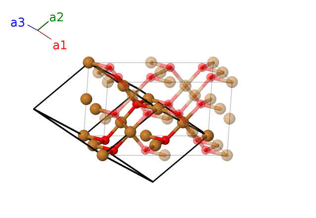 | $\mathbf{B_{6}}$ | = | $\frac{1}{2} \, \mathbf{a}_{3}$ | = | $\frac{1}{4}a \,\mathbf{\hat{x}}+\frac{1}{4}a \,\mathbf{\hat{y}}- \frac{1}{4}c \,\mathbf{\hat{z}}$ | (8c) | Cu I |