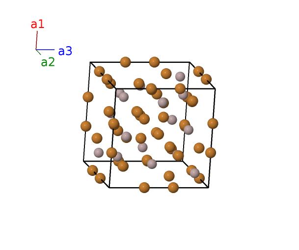 | $\mathbf{B_{6}}$ | = | $- x_{2} \, \mathbf{a}_{1}- x_{2} \, \mathbf{a}_{2}+x_{2} \, \mathbf{a}_{3}$ | = | $- a x_{2} \,\mathbf{\hat{x}}- a x_{2} \,\mathbf{\hat{y}}+a x_{2} \,\mathbf{\hat{z}}$ | (4e) | Cu I |