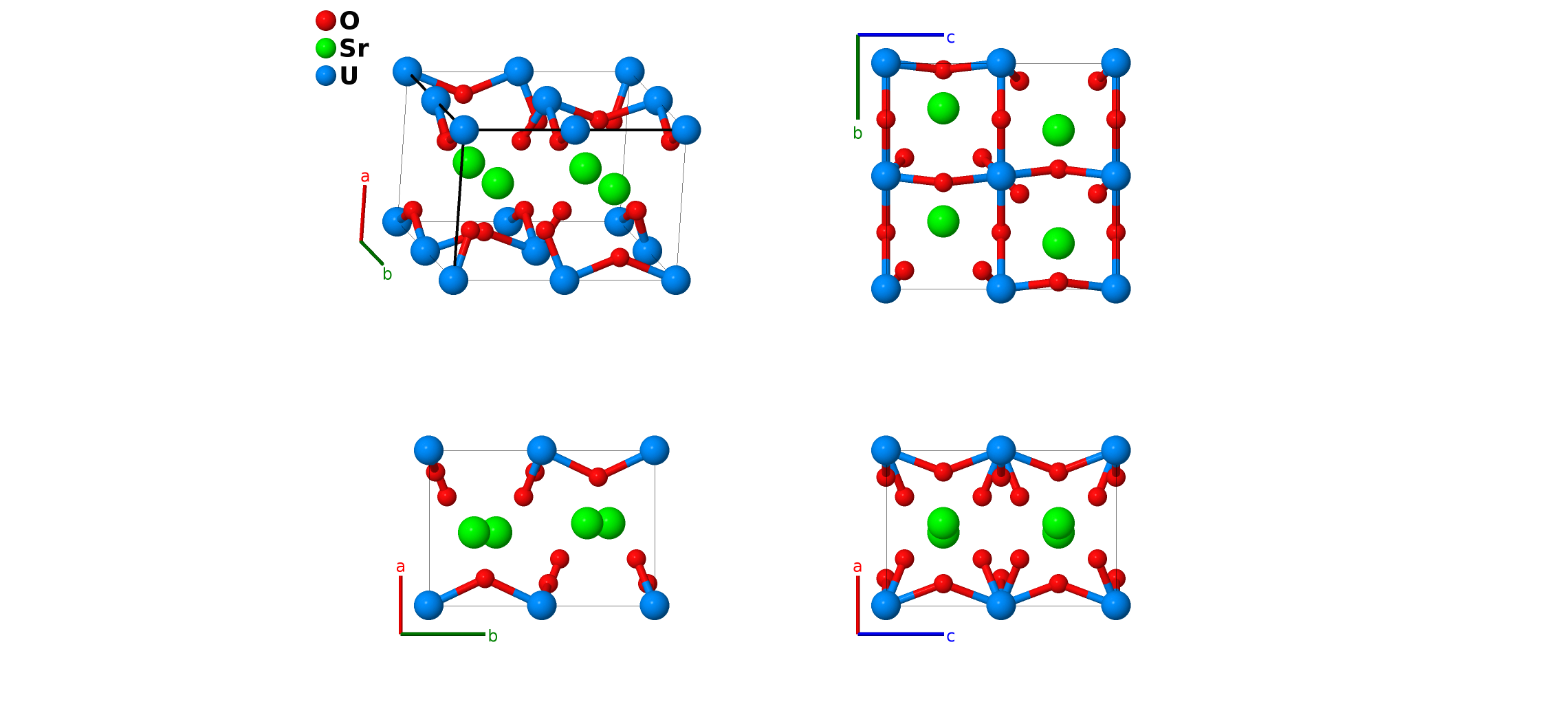 | $\mathbf{B_{13}}$ | = | $x_{4} \, \mathbf{a}_{1}+y_{4} \, \mathbf{a}_{2}+\frac{1}{4} \, \mathbf{a}_{3}$ | = | $a x_{4} \,\mathbf{\hat{x}}+b y_{4} \,\mathbf{\hat{y}}+\frac{1}{4}c \,\mathbf{\hat{z}}$ | (4d) | Sr I |