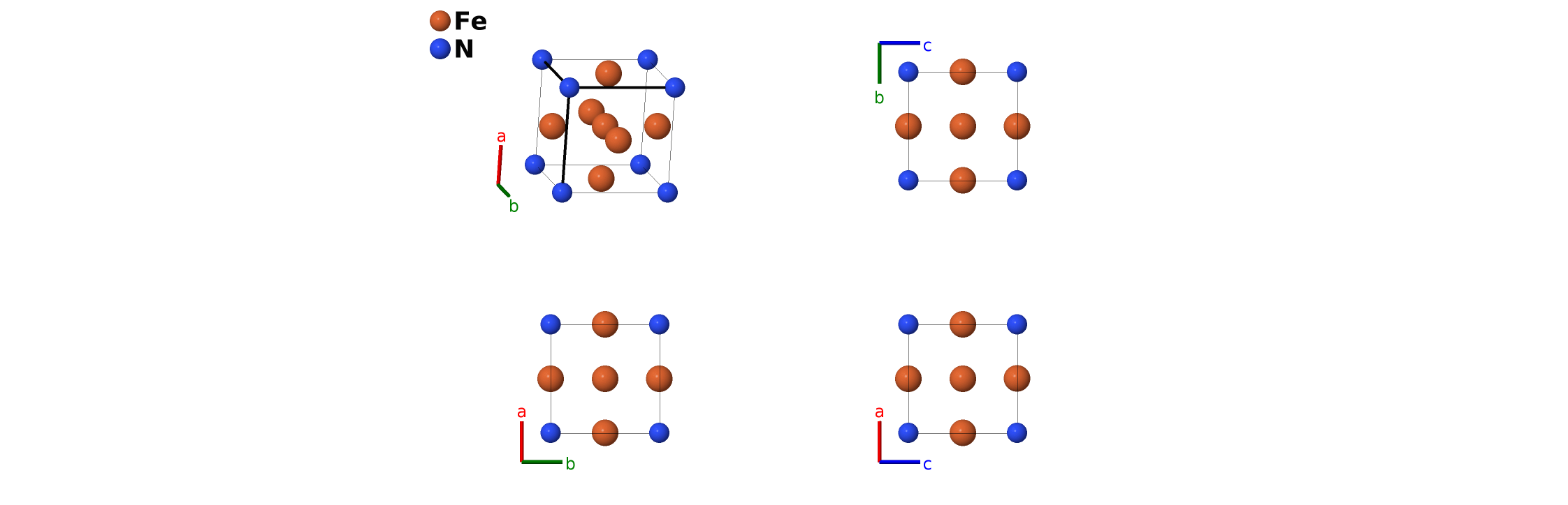 | $\mathbf{B_{4}}$ | = | $\frac{1}{2} \, \mathbf{a}_{1}+\frac{1}{2} \, \mathbf{a}_{3}$ | = | $\frac{1}{2}a \,\mathbf{\hat{x}}+\frac{1}{2}a \,\mathbf{\hat{z}}$ | (3c) | Fe II |