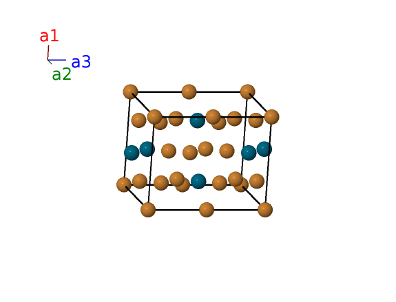 | $\mathbf{B_{3}}$ | = | $\frac{1}{2} \, \mathbf{a}_{1}+\frac{1}{2} \, \mathbf{a}_{2}+\frac{1}{4} \, \mathbf{a}_{3}$ | = | $\frac{1}{2}a \,\mathbf{\hat{x}}+\frac{1}{2}a \,\mathbf{\hat{y}}+\frac{1}{4}c \,\mathbf{\hat{z}}$ | (2f) | Cu II |