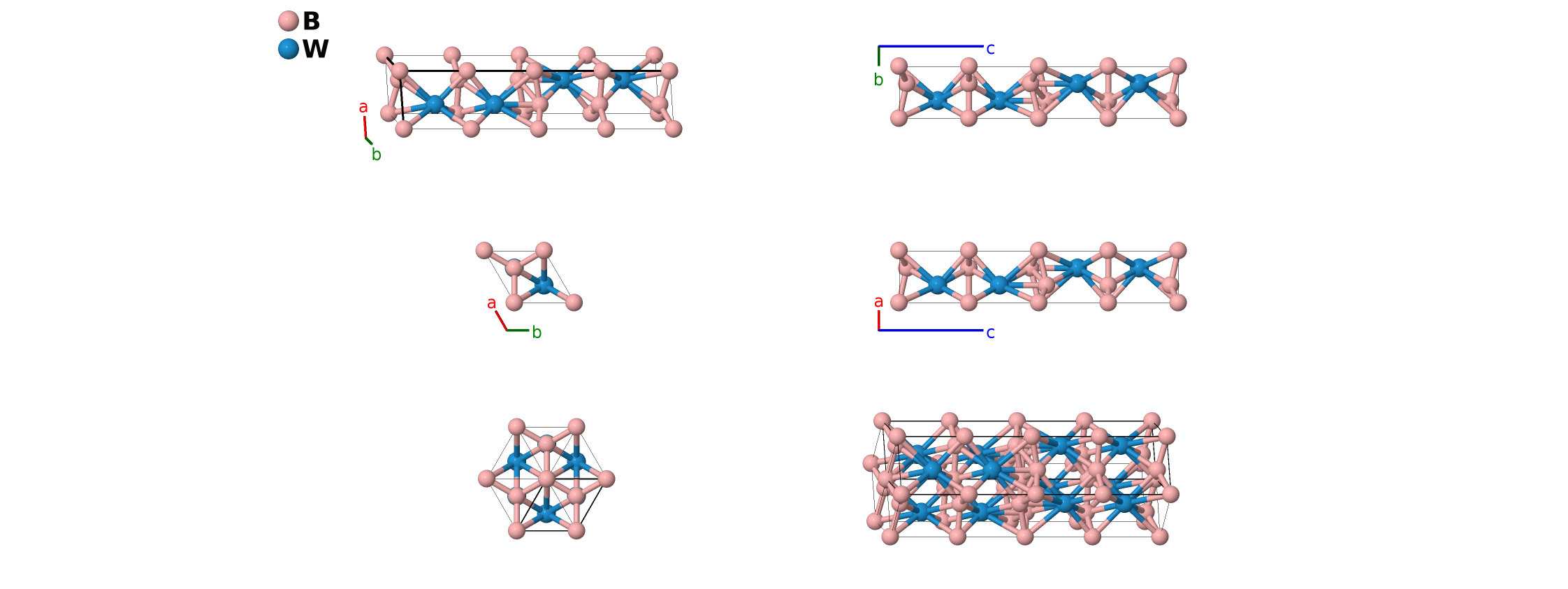 | $\mathbf{B_{11}}$ | = | $\frac{1}{3} \, \mathbf{a}_{1}+\frac{2}{3} \, \mathbf{a}_{2}+z_{5} \, \mathbf{a}_{3}$ | = | $\frac{1}{2}a \,\mathbf{\hat{x}}+\frac{\sqrt{3}}{6}a \,\mathbf{\hat{y}}+c z_{5} \,\mathbf{\hat{z}}$ | (4f) | W I |