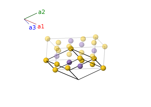 | $\mathbf{B_{2}}$ | = | $x_{2} \, \mathbf{a}_{1}+x_{2} \, \mathbf{a}_{2}+z_{2} \, \mathbf{a}_{3}$ | = | $\left(a x_{2} + c z_{2} \cos{\beta}\right) \,\mathbf{\hat{x}}+c z_{2} \sin{\beta} \,\mathbf{\hat{z}}$ | (4i) | Au II |
