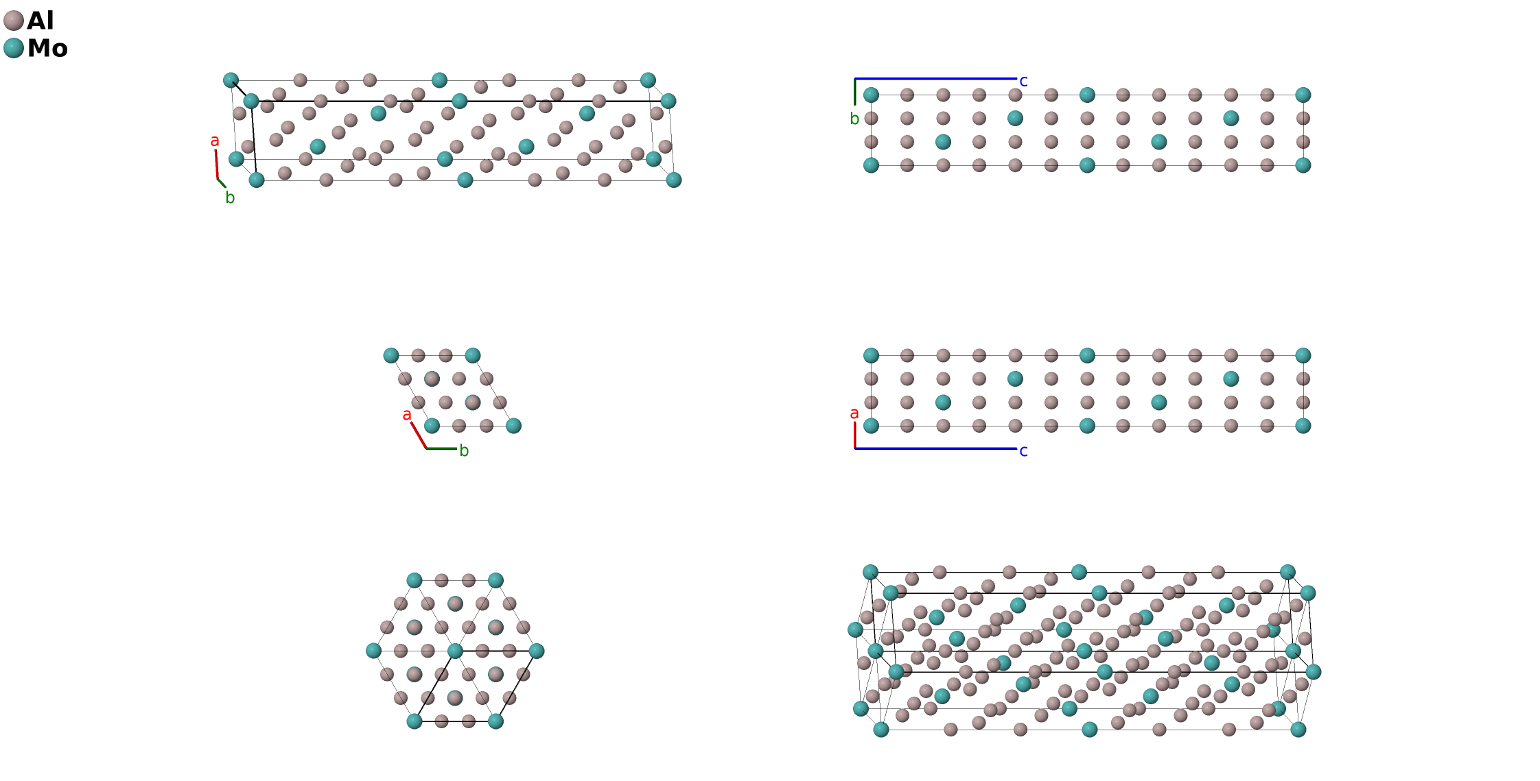 | $\mathbf{B_{8}}$ | = | $\frac{1}{4} \, \mathbf{a}_{1}+x_{3} \, \mathbf{a}_{2}- \left(x_{3} - \frac{1}{2}\right) \, \mathbf{a}_{3}$ | = | $\frac{1}{8}a \left(4 x_{3} - 1\right) \,\mathbf{\hat{x}}+\frac{\sqrt{3}}{8}a \left(4 x_{3} - 1\right) \,\mathbf{\hat{y}}+\frac{1}{4}c \,\mathbf{\hat{z}}$ | (6e) | Al II |