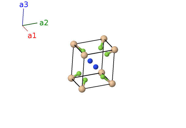 | $\mathbf{B_{3}}$ | = | $\frac{2}{3} \, \mathbf{a}_{1}+\frac{1}{3} \, \mathbf{a}_{2}- z_{2} \, \mathbf{a}_{3}$ | = | $\frac{1}{2}a \,\mathbf{\hat{x}}- \frac{\sqrt{3}}{6}a \,\mathbf{\hat{y}}- c z_{2} \,\mathbf{\hat{z}}$ | (2d) | N I |