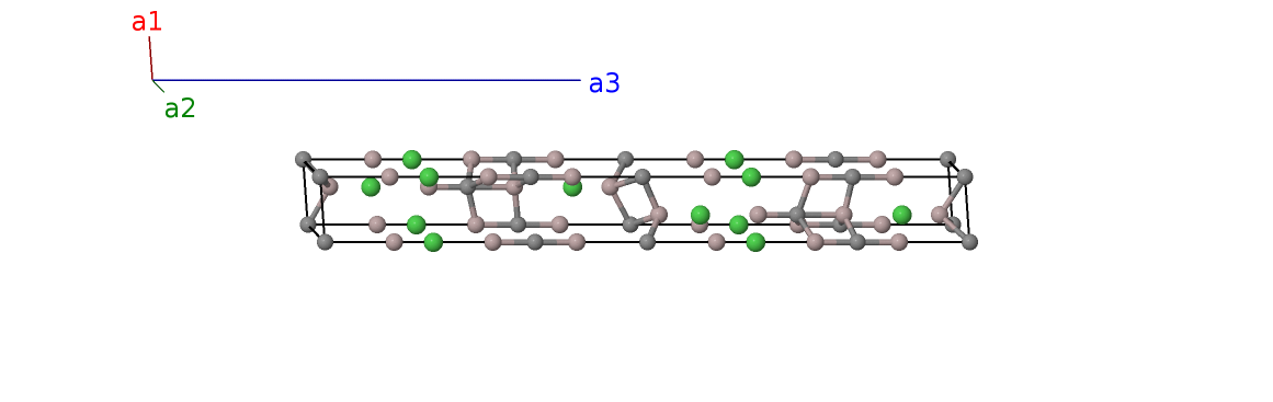 | $\mathbf{B_{13}}$ | = | $\frac{1}{3} \, \mathbf{a}_{1}+\frac{2}{3} \, \mathbf{a}_{2}+z_{7} \, \mathbf{a}_{3}$ | = | $\frac{1}{2}a \,\mathbf{\hat{x}}+\frac{\sqrt{3}}{6}a \,\mathbf{\hat{y}}+c z_{7} \,\mathbf{\hat{z}}$ | (2b) | Al IV |