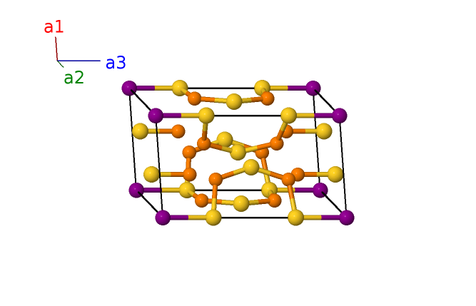 | $\mathbf{B_{3}}$ | = | $\frac{2}{3} \, \mathbf{a}_{1}+\frac{1}{3} \, \mathbf{a}_{2}$ | = | $\frac{1}{2}a \,\mathbf{\hat{x}}- \frac{\sqrt{3}}{6}a \,\mathbf{\hat{y}}$ | (2c) | Au I |