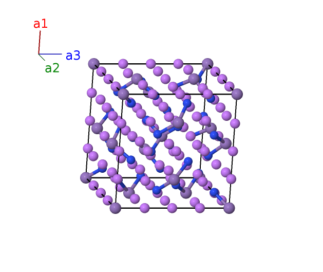 | $\mathbf{B_{33}}$ | = | $\left(x_{6} + \frac{1}{2}\right) \, \mathbf{a}_{1}+\left(x_{6} + \frac{1}{2}\right) \, \mathbf{a}_{2}+\left(x_{6} + \frac{1}{2}\right) \, \mathbf{a}_{3}$ | = | $a \left(x_{6} + \frac{1}{2}\right) \,\mathbf{\hat{x}}+a \left(x_{6} + \frac{1}{2}\right) \,\mathbf{\hat{y}}+a \left(x_{6} + \frac{1}{2}\right) \,\mathbf{\hat{z}}$ | (8e) | N I |