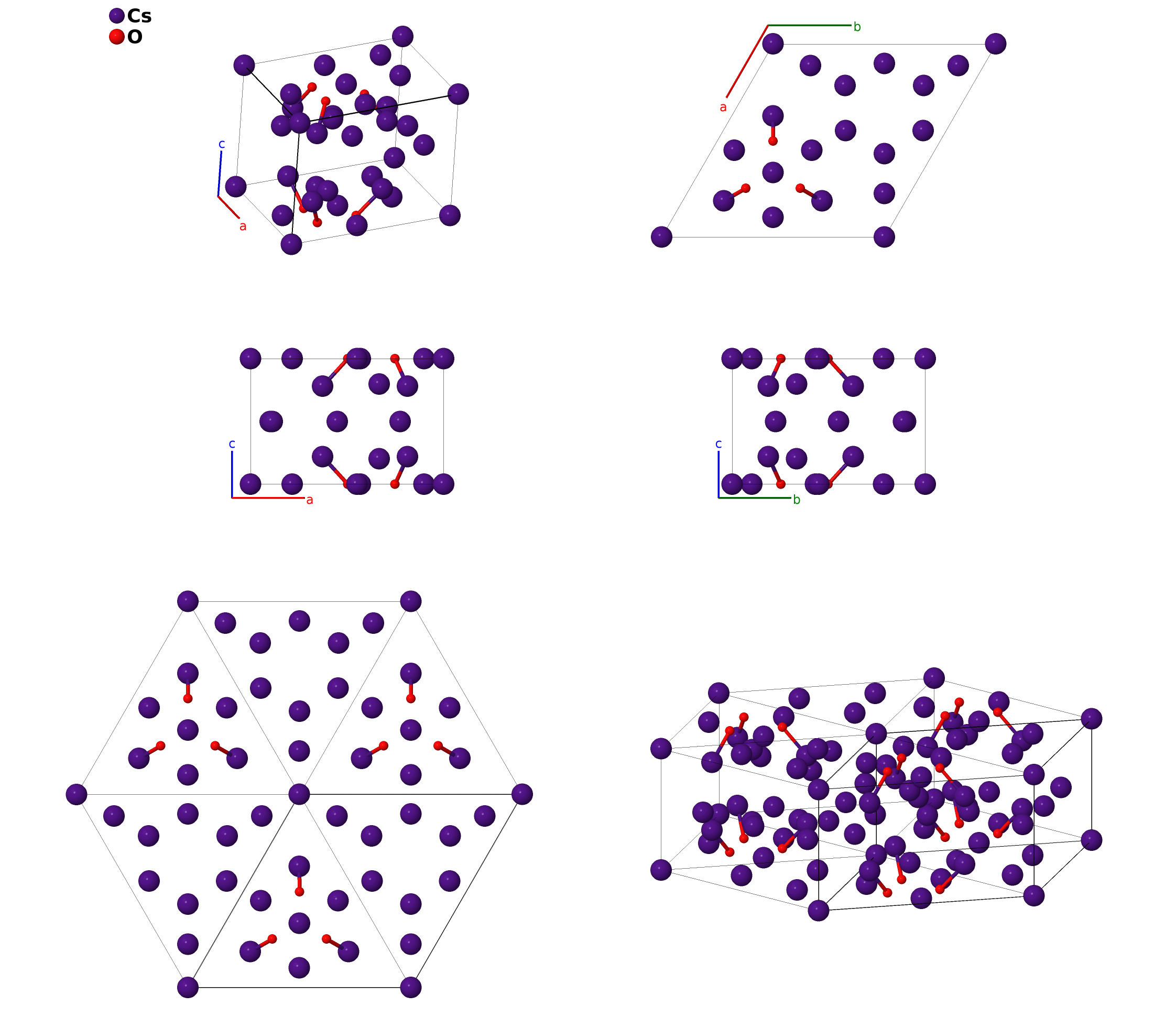 | $\mathbf{B_{3}}$ | = | $\frac{1}{3} \, \mathbf{a}_{1}+\frac{2}{3} \, \mathbf{a}_{2}- z_{2} \, \mathbf{a}_{3}$ | = | $\frac{1}{2}a \,\mathbf{\hat{x}}+\frac{\sqrt{3}}{6}a \,\mathbf{\hat{y}}- c z_{2} \,\mathbf{\hat{z}}$ | (2h) | Cs II |