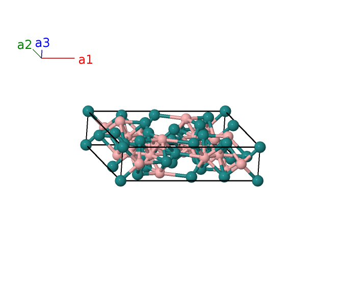 | $\mathbf{B_{33}}$ | = | $- \left(x_{9} - \frac{1}{2}\right) \, \mathbf{a}_{1}+\left(y_{9} + \frac{1}{2}\right) \, \mathbf{a}_{2}+\frac{1}{2} \, \mathbf{a}_{3}$ | = | $- a \left(x_{9} - \frac{1}{2}\right) \,\mathbf{\hat{x}}+b \left(y_{9} + \frac{1}{2}\right) \,\mathbf{\hat{y}}+\frac{1}{2}c \,\mathbf{\hat{z}}$ | (4h) | Ru V |