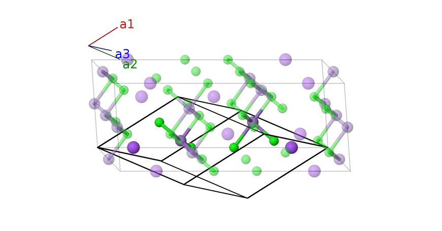 | $\mathbf{B_{13}}$ | = | $- x_{4} \, \mathbf{a}_{1}- z_{4} \, \mathbf{a}_{2}- x_{4} \, \mathbf{a}_{3}$ | = | $\frac{1}{\sqrt{3}}a \left(x_{4} - z_{4}\right) \,\mathbf{\hat{y}}- \frac{1}{3}c \left(2 x_{4} + z_{4}\right) \,\mathbf{\hat{z}}$ | (6h) | Cl II |