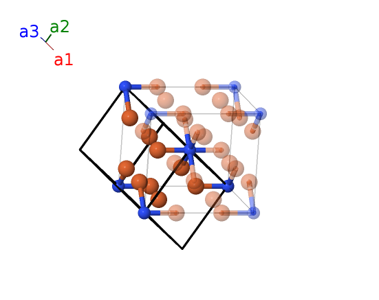 | $\mathbf{B_{7}}$ | = | $- x_{4} \, \mathbf{a}_{1}- x_{4} \, \mathbf{a}_{2}- 2 x_{4} \, \mathbf{a}_{3}$ | = | $- a x_{4} \,\mathbf{\hat{x}}- a x_{4} \,\mathbf{\hat{y}}$ | (8h) | Fe III |