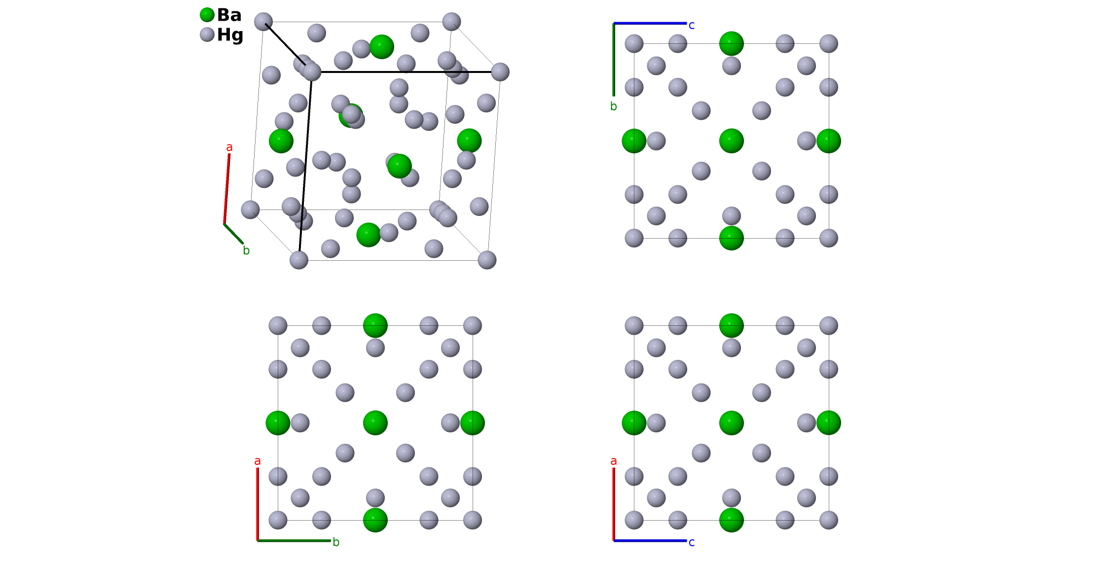 | $\mathbf{B_{33}}$ | = | $y_{5} \, \mathbf{a}_{1}+y_{5} \, \mathbf{a}_{2}+\frac{1}{2} \, \mathbf{a}_{3}$ | = | $a y_{5} \,\mathbf{\hat{x}}+a y_{5} \,\mathbf{\hat{y}}+\frac{1}{2}a \,\mathbf{\hat{z}}$ | (12j) | Hg IV |