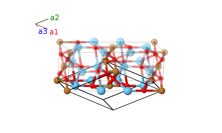 | $\mathbf{B_{11}}$ | = | $\left(x_{11} - y_{11}\right) \, \mathbf{a}_{1}+\left(x_{11} + y_{11}\right) \, \mathbf{a}_{2}+z_{11} \, \mathbf{a}_{3}$ | = | $\left(a x_{11} + c z_{11} \cos{\beta}\right) \,\mathbf{\hat{x}}+b y_{11} \,\mathbf{\hat{y}}+c z_{11} \sin{\beta} \,\mathbf{\hat{z}}$ | (4b) | O V |