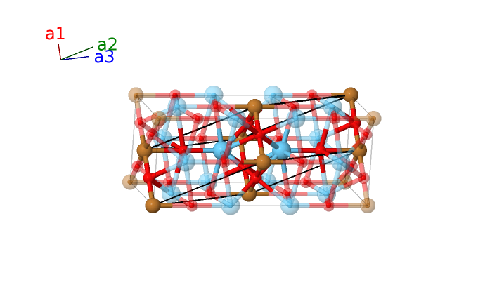 | $\mathbf{B_{3}}$ | = | $\frac{1}{2} \, \mathbf{a}_{2}+\frac{1}{2} \, \mathbf{a}_{3}$ | = | $\frac{1}{2}a \,\mathbf{\hat{x}}+\frac{1}{4}b \,\mathbf{\hat{y}}+\frac{1}{4}c \,\mathbf{\hat{z}}$ | (8c) | O I |