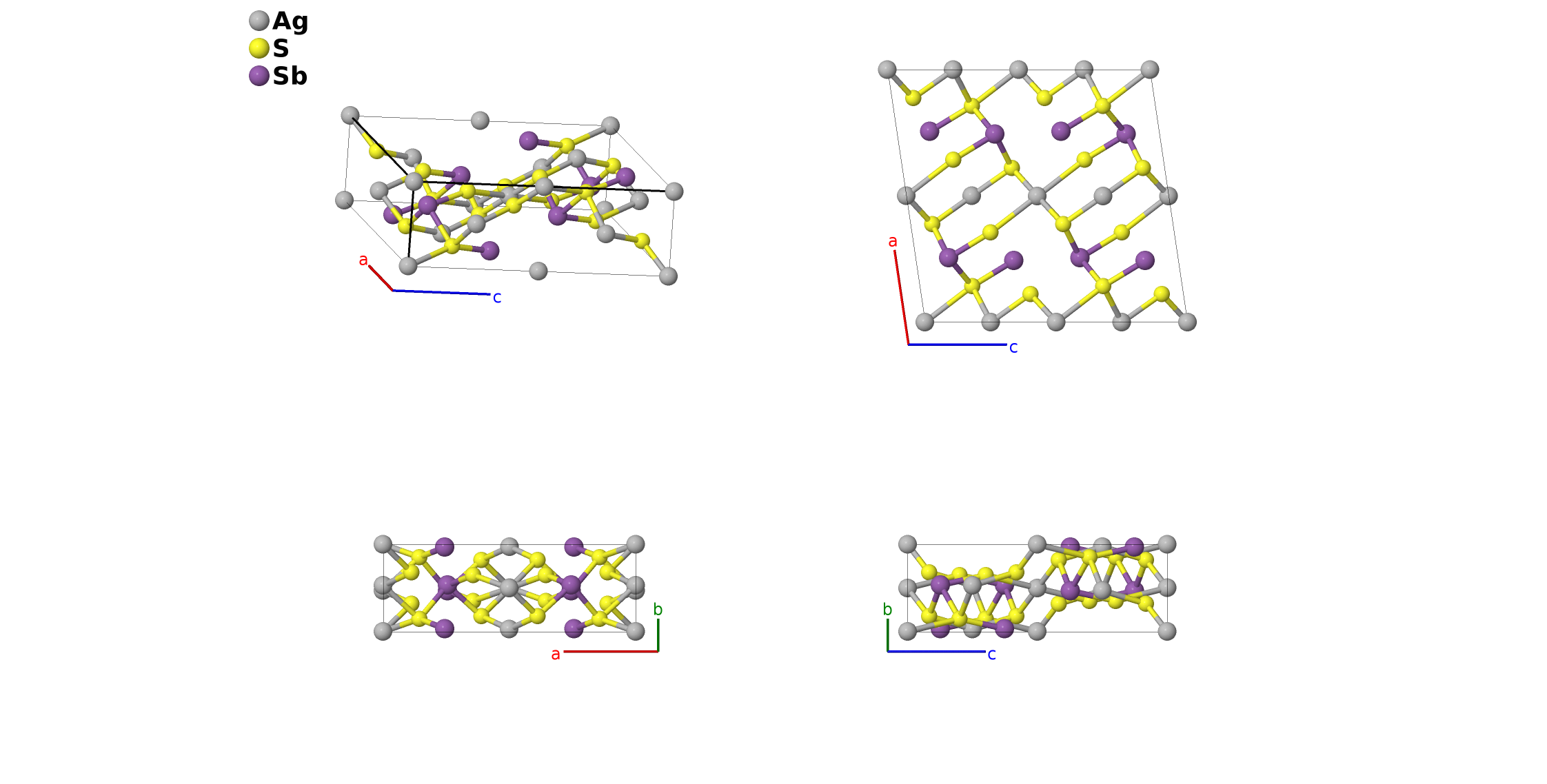 | $\mathbf{B_{4}}$ | = | $y_{2} \, \mathbf{a}_{1}- y_{2} \, \mathbf{a}_{2}+\frac{3}{4} \, \mathbf{a}_{3}$ | = | $\frac{3}{4}c \cos{\beta} \,\mathbf{\hat{x}}- b y_{2} \,\mathbf{\hat{y}}+\frac{3}{4}c \sin{\beta} \,\mathbf{\hat{z}}$ | (4e) | Ag II |
