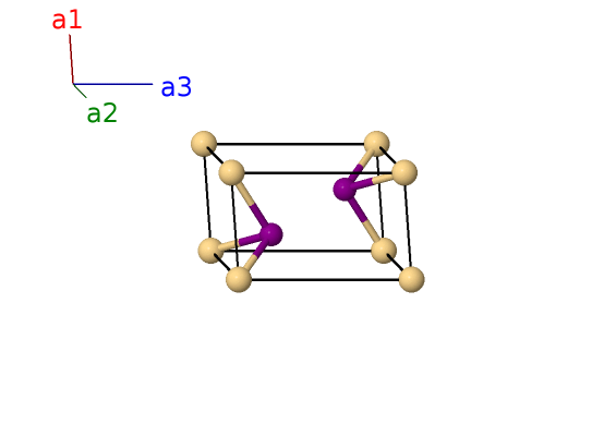 | $\mathbf{B_{2}}$ | = | $\frac{1}{3} \, \mathbf{a}_{1}+\frac{2}{3} \, \mathbf{a}_{2}+z_{2} \, \mathbf{a}_{3}$ | = | $\frac{1}{2}a \,\mathbf{\hat{x}}+\frac{\sqrt{3}}{6}a \,\mathbf{\hat{y}}+c z_{2} \,\mathbf{\hat{z}}$ | (2d) | I I |