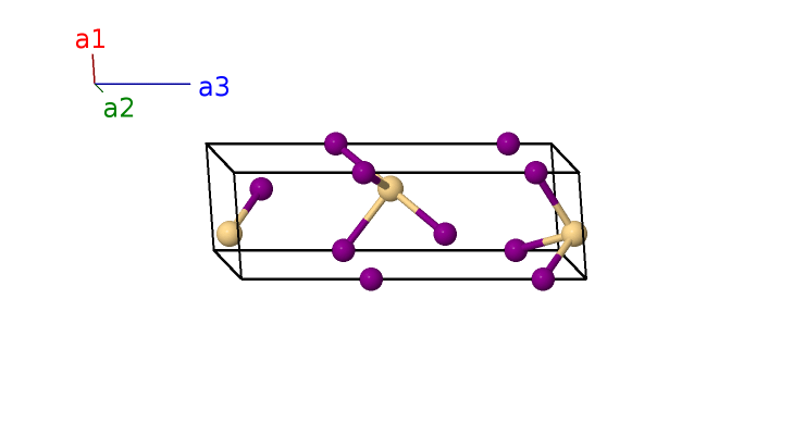 | $\mathbf{B_{3}}$ | = | $\frac{1}{3} \, \mathbf{a}_{1}+\frac{2}{3} \, \mathbf{a}_{2}+z_{2} \, \mathbf{a}_{3}$ | = | $\frac{1}{2}a \,\mathbf{\hat{x}}+\frac{\sqrt{3}}{6}a \,\mathbf{\hat{y}}+c z_{2} \,\mathbf{\hat{z}}$ | (2b) | Cd I |