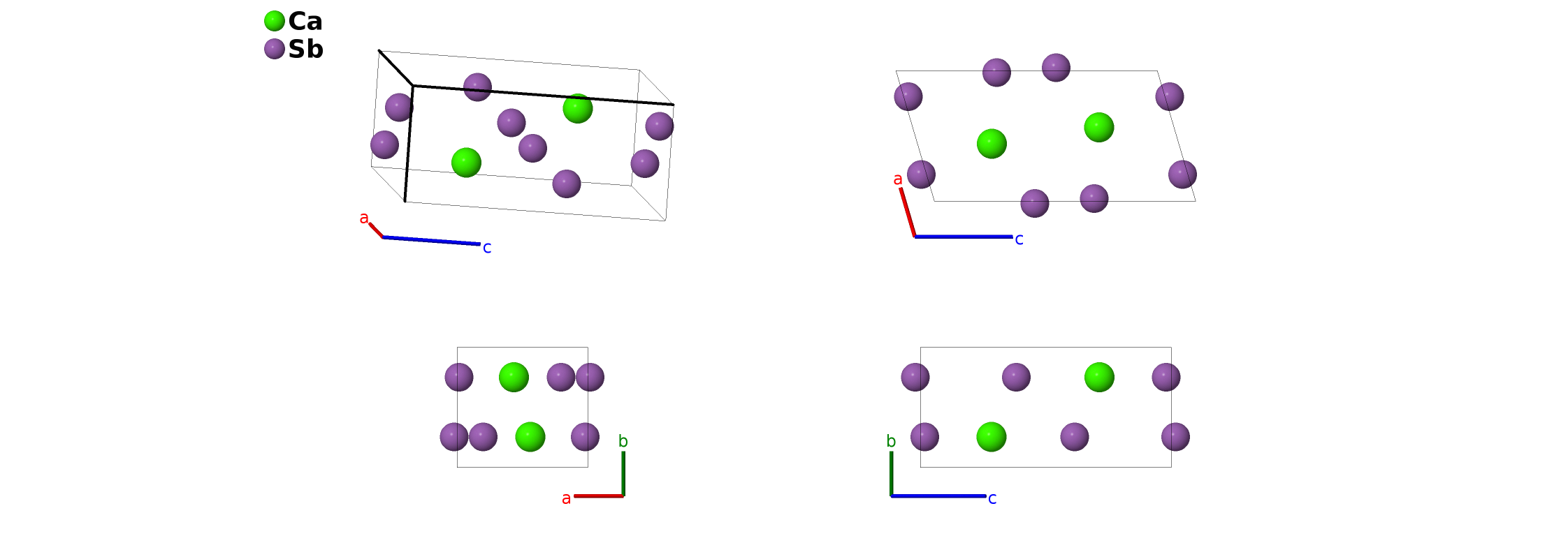 | $\mathbf{B_{3}}$ | = | $x_{2} \, \mathbf{a}_{1}+\frac{1}{4} \, \mathbf{a}_{2}+z_{2} \, \mathbf{a}_{3}$ | = | $\left(a x_{2} + c z_{2} \cos{\beta}\right) \,\mathbf{\hat{x}}+\frac{1}{4}b \,\mathbf{\hat{y}}+c z_{2} \sin{\beta} \,\mathbf{\hat{z}}$ | (2e) | Sb I |