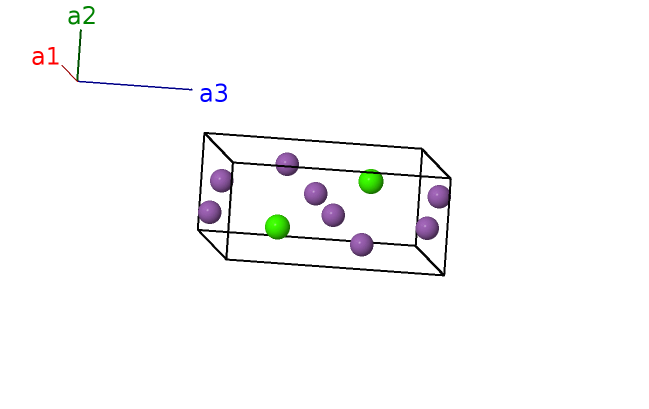 | $\mathbf{B_{2}}$ | = | $- x_{1} \, \mathbf{a}_{1}+\frac{3}{4} \, \mathbf{a}_{2}- z_{1} \, \mathbf{a}_{3}$ | = | $- \left(a x_{1} + c z_{1} \cos{\beta}\right) \,\mathbf{\hat{x}}+\frac{3}{4}b \,\mathbf{\hat{y}}- c z_{1} \sin{\beta} \,\mathbf{\hat{z}}$ | (2e) | Ca I |