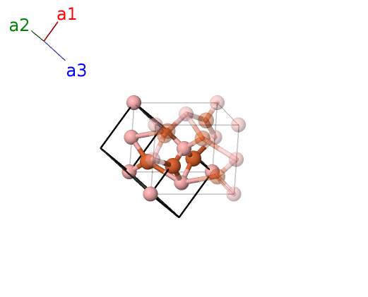 | $\mathbf{B_{4}}$ | = | $- \left(x_{3} - z_{3}\right) \, \mathbf{a}_{1}- \left(x_{3} - z_{3}\right) \, \mathbf{a}_{2}- 2 x_{3} \, \mathbf{a}_{3}$ | = | $- a x_{3} \,\mathbf{\hat{x}}- a x_{3} \,\mathbf{\hat{y}}+c z_{3} \,\mathbf{\hat{z}}$ | (8i) | Fe I |