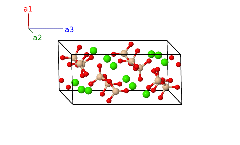 | $\mathbf{B_{5}}$ | = | $x_{2} \, \mathbf{a}_{1}+y_{2} \, \mathbf{a}_{2}+z_{2} \, \mathbf{a}_{3}$ | = | $\left(a x_{2} + c z_{2} \cos{\beta}\right) \,\mathbf{\hat{x}}+b y_{2} \,\mathbf{\hat{y}}+c z_{2} \sin{\beta} \,\mathbf{\hat{z}}$ | (4e) | Ca II |