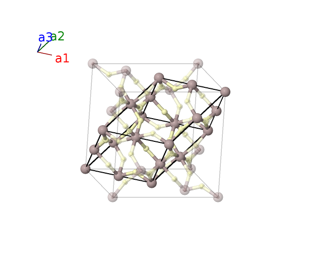 | $\mathbf{B_{3}}$ | = | $\frac{1}{2} \, \mathbf{a}_{2}$ | = | $\frac{1}{4}a \,\mathbf{\hat{x}}+\frac{1}{4}a \,\mathbf{\hat{z}}$ | (16c) | Al I |